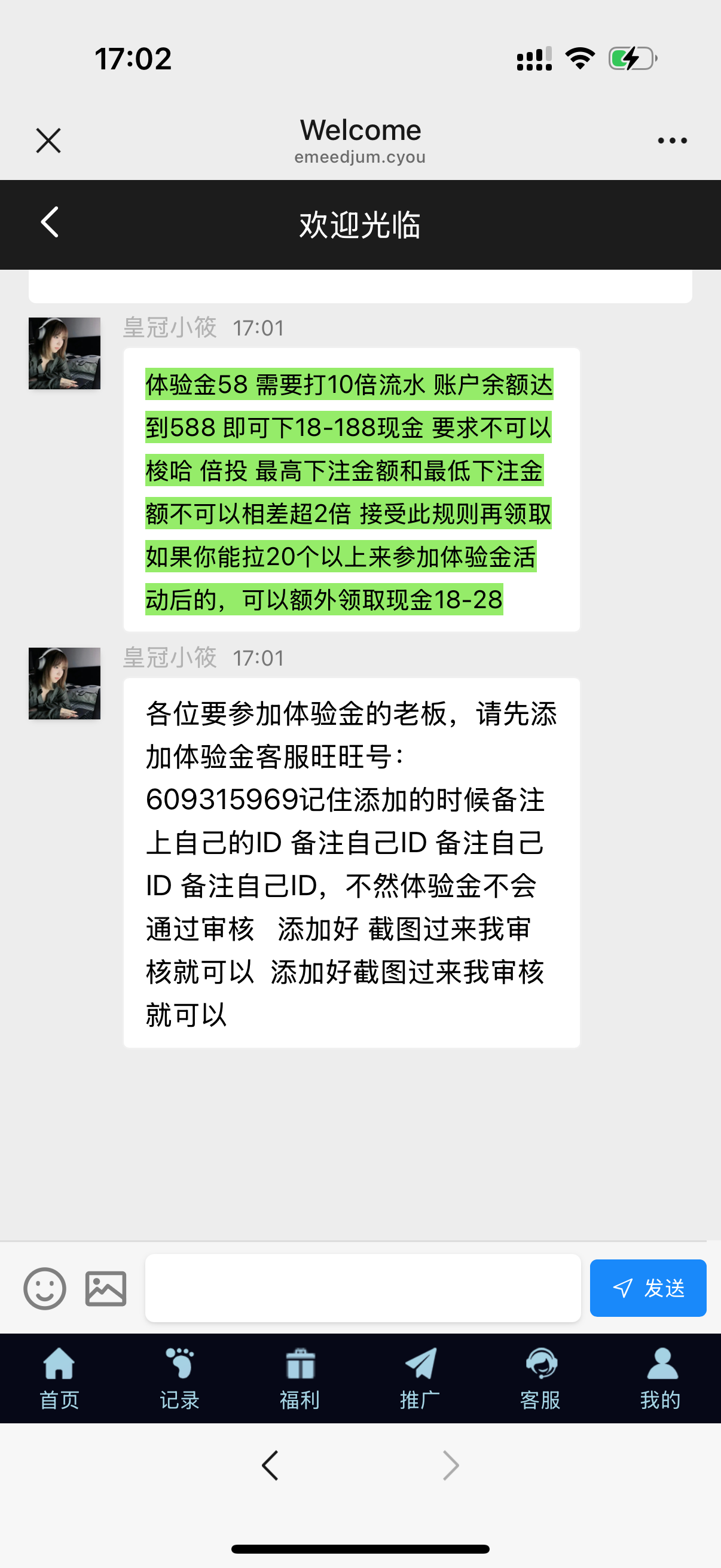 活动这个需要加旺旺客服发ID,添加备注ID去充值提交58